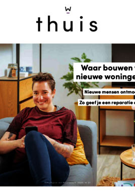 Vier keer per jaar valt ons bewonersblad Thuis op de deurmat van alle huurders van Woonwaard. Ons bewonersblad staat altijd vol met het laatste nieuws, relevante artikelen en actuele onderwerpen.
